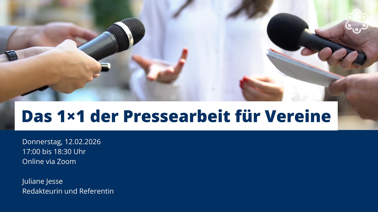 Weitere Informationen und Anmeldung: https://veranstaltungen-landesservicestelle-nrw.de/engagement-voranbringen/pressearbeit-vereine/