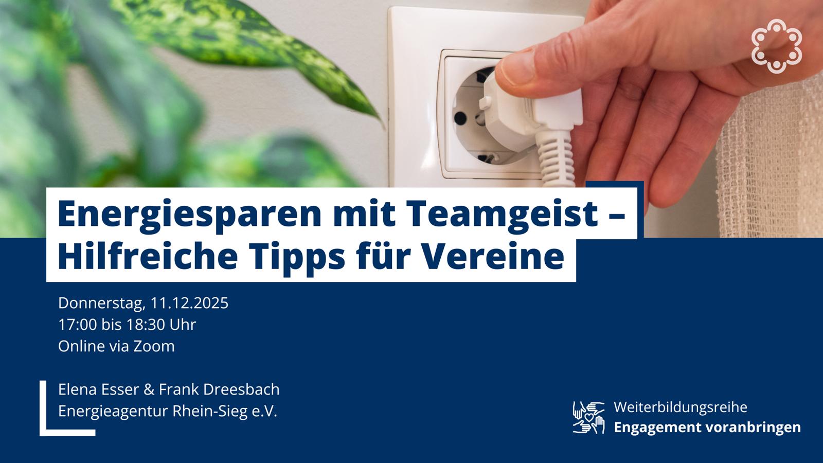 Weitere Informationen und Anmeldung: https://veranstaltungen-landesservicestelle-nrw.de/engagement-voranbringen/energiespartipps-vereine/