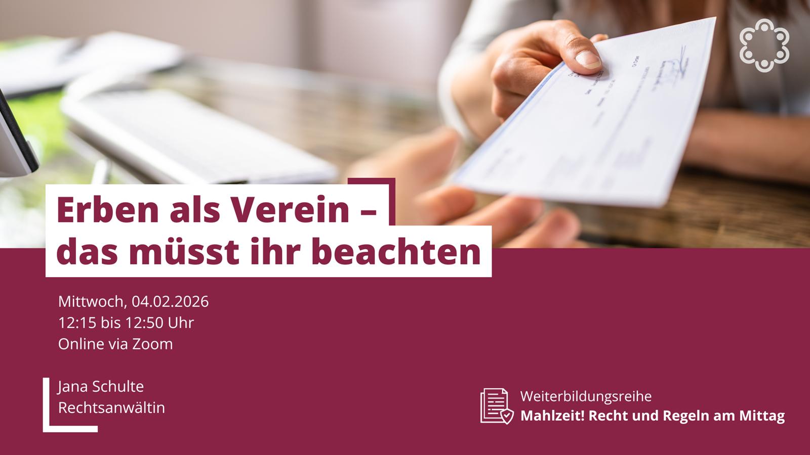 Im Webinar erfahren Sie, ob und wie Vereine erben dürfen, welche Schritte nach Zustellung des Testaments durch das Nachlassgericht nötig sind und worauf bei Besonderheiten wie Immobilien, Erbengemeinschaften und Testamentsvollstreckung zu achten ist.