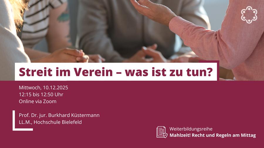 Weitere Informationen und Anmeldung: https://veranstaltungen-landesservicestelle-nrw.de/recht-regeln/streit-im-verein/